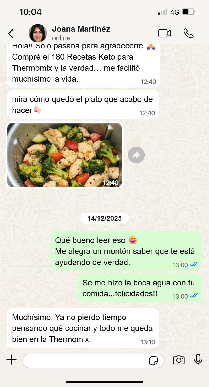 Tras ayudar a su familia a transformar su salud, Luciana creó un repertorio exclusivo de 280 recetas cetogénicas diseñadas específicamente para Thermomix®. Desde panes y pizzas hasta postres bajos en carbohidratos, todas las recetas fueron testeadas para ofrecer resultados reales.